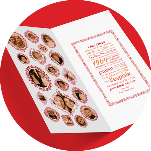 Élaboration de la charte graphique, création du menu, des cartes de visite, flyer et d’un porte addition