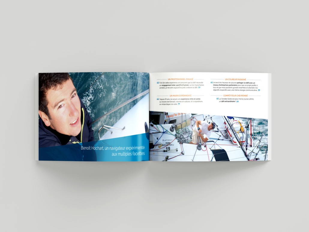 Conception d’une brochure « Vendée Globe 2020 » pour le skipper Benoît Hochart. Elle a été créée en collaboration